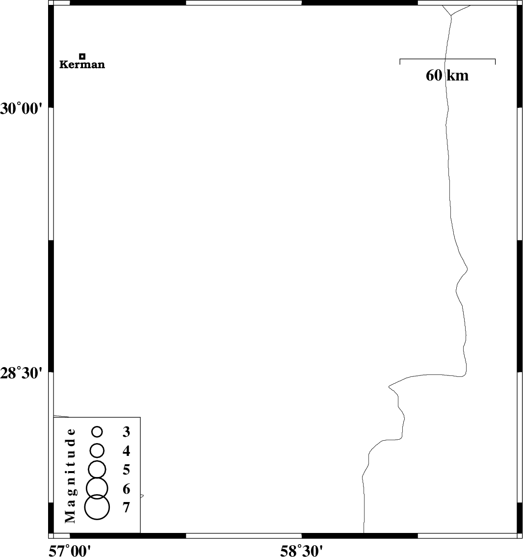 | 2018/03/26 | 03:21:01.8 | 07:51:01.8 | 29.074 | 58.393 | 14 | ML:3.4 | Kerman Province, 5 km of Bam |