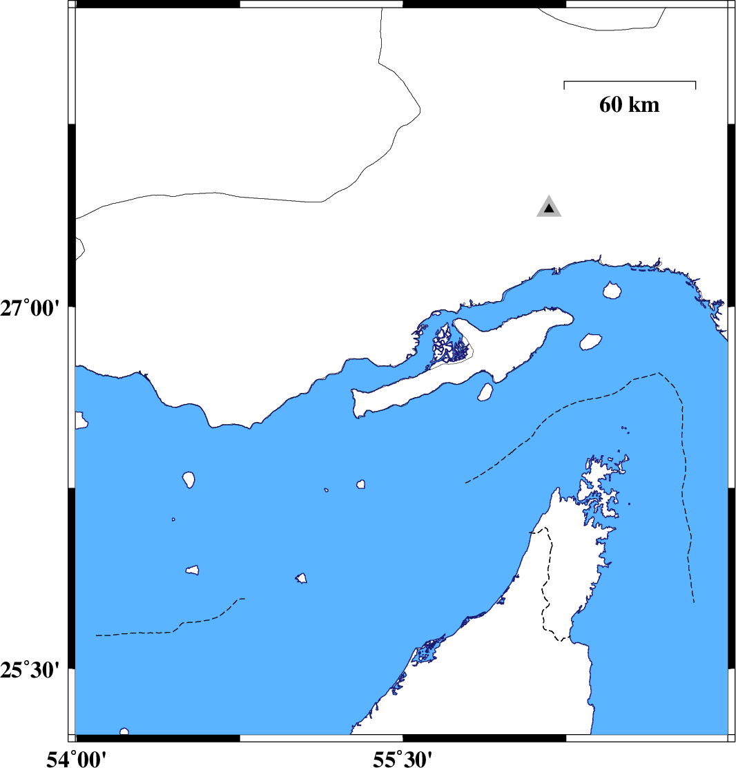 | 2018/04/03 | 22:06:48.2 | 02:36:48.2 | 26.724 | 55.493 | 9 | ML:2.6 | Persian Gulf, 68 km North-East of Bandar-e lengeh | ||