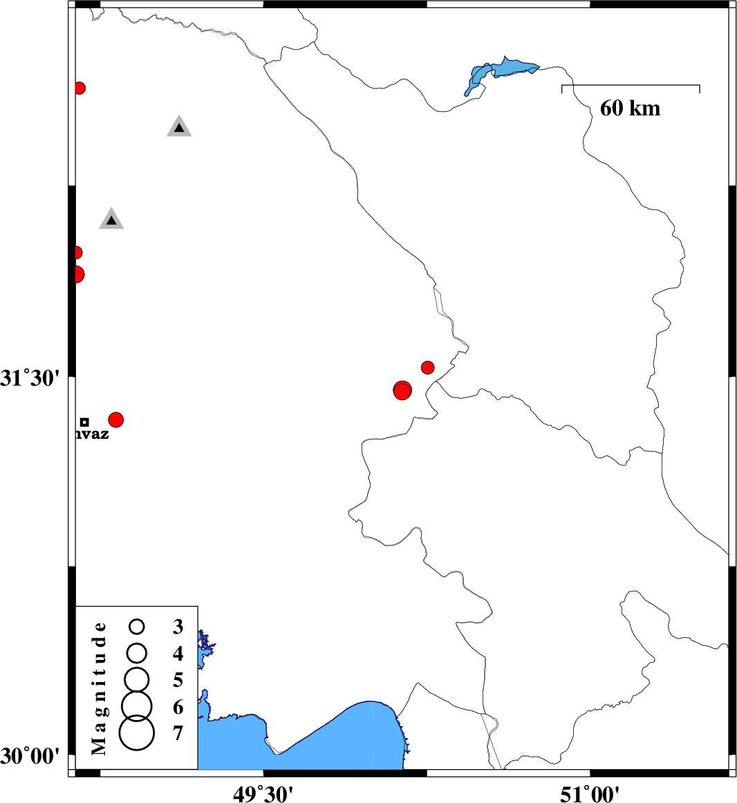 | 2018/04/08 | 14:11:47.2 | 18:41:47.2 | 31.33 | 48.821 | 15 | ML:3.1 | Khoozestan Province, 14 km -East of Ahvaz | ||