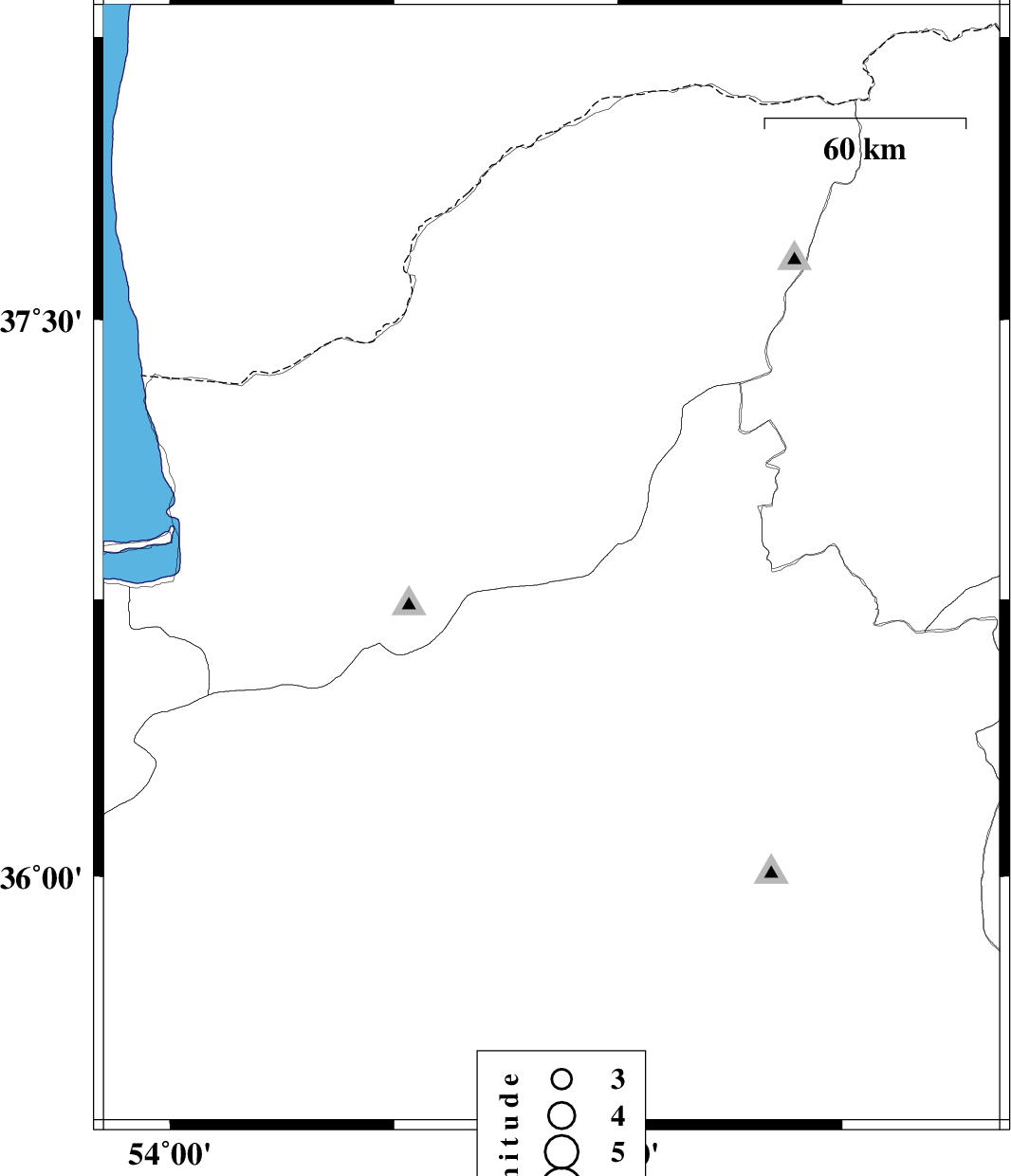 | 2018/04/10 | 19:38:52.7 | 00:08:52.7 | 36.836 | 55.277 | 14 | ML:3.5 | Golestan Province, 23 km South-East of Ramian |