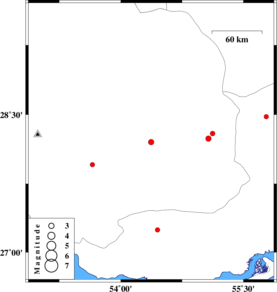 | 2018/04/08 | 05:30:01.1 | 10:00:01.1 | 28.241 | 55.072 | 14 | ML:3.1 | Fars Province, 82 km -West of Hajiabad | ||