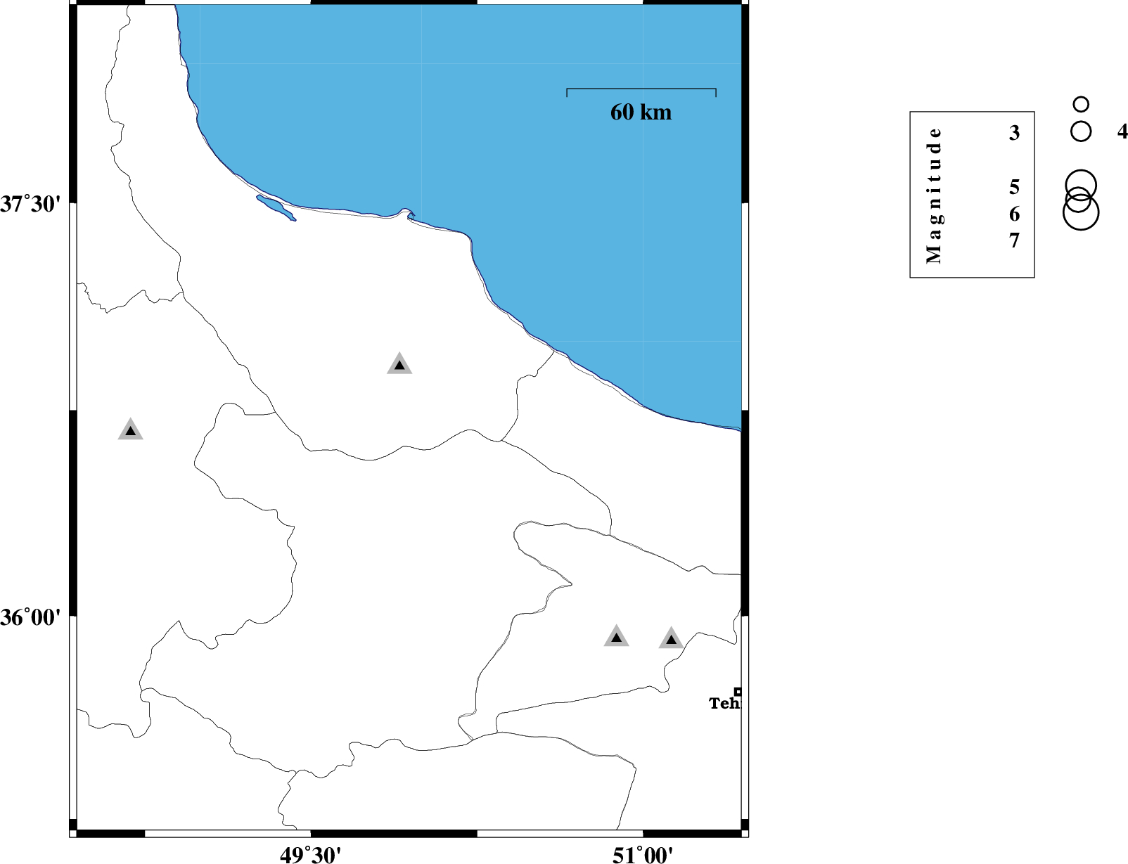 | 2018/04/06 | 00:16:37.3 | 04:46:37.3 | 35.551 | 50.227 | 15 | ML:2.3 | Ghazvin Province, 28 km South-East of Buinzara |