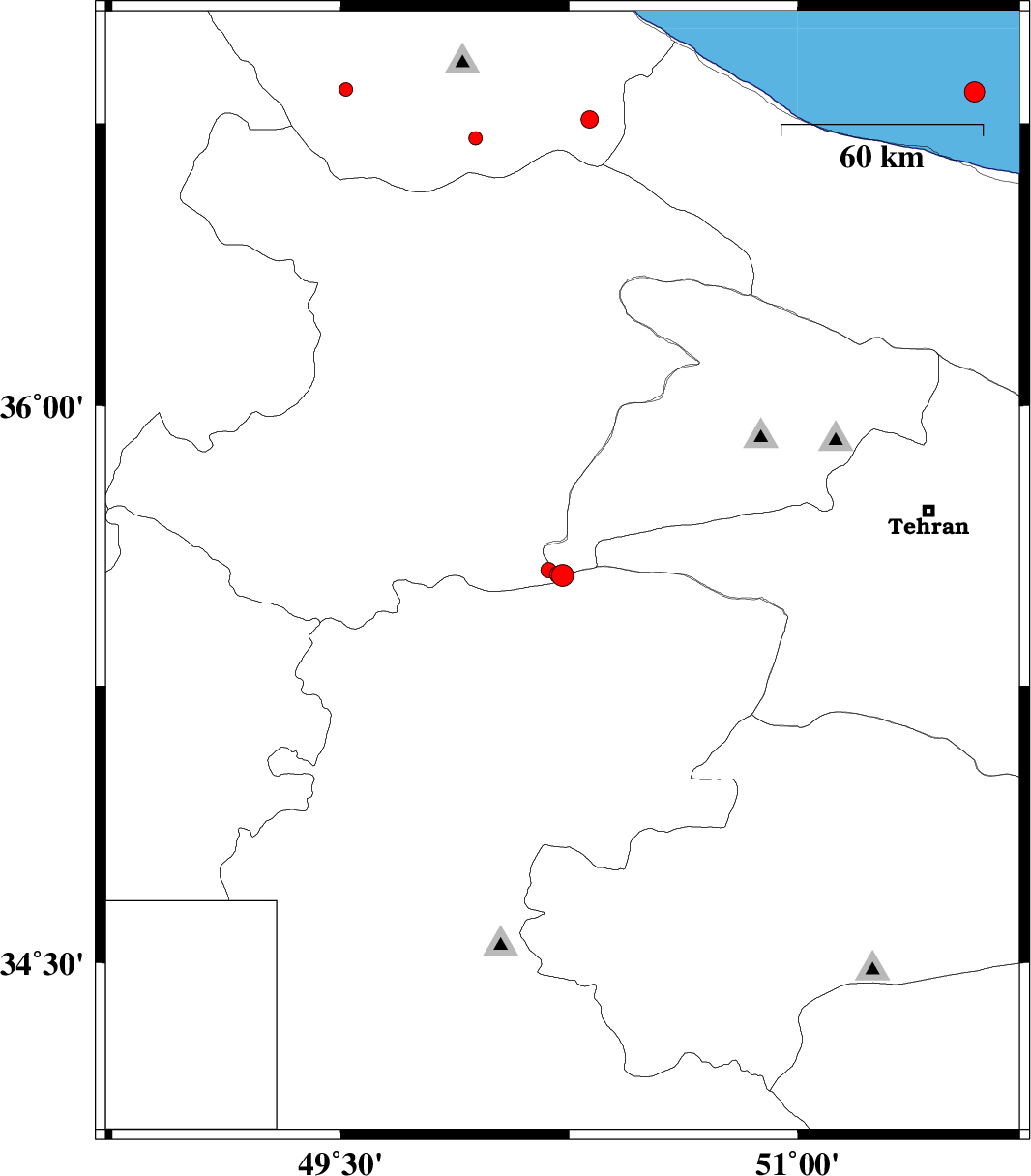 | 2018/04/06 | 17:36:56.6 | 22:06:56.6 | 36.833 | 51.581 | 6 | ML:2.9 | Caspian Sea, 22 km North of Nowshahr | ||