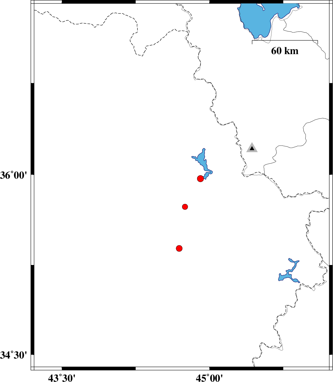| 2018/04/16 | 04:30:37.1 | 09:00:37.1 | 35.898 | 44.718 | 15 | ML:4.4 | Iraq, 73 km South-West of Sardasht | ||