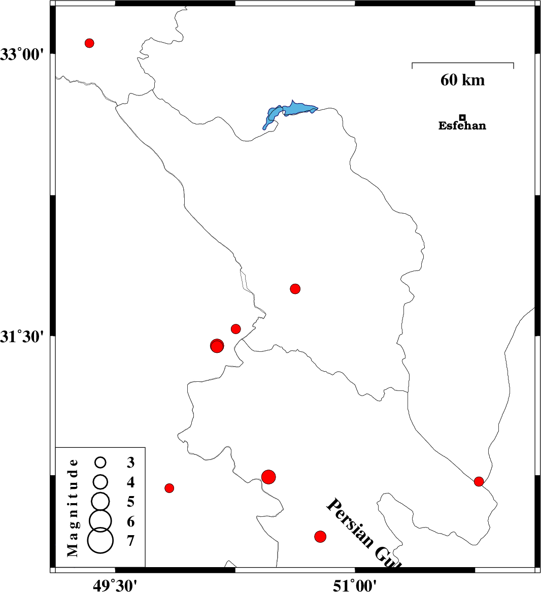 | 2018/04/17 | 20:38:46.6 | 01:08:46.6 | 30.716 | 51.774 | 15 | ML:2.7 | Esfahan Province, 20 km -East of Yasuj | ||