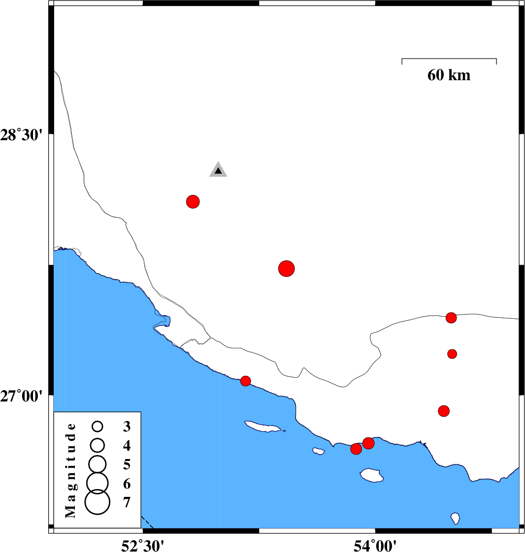 | 2018/04/19 | 04:05:18.2 | 08:35:18.2 | 26.721 | 53.955 | 15 | ML:3.4 | , 67 km South-West of Bastak | ||