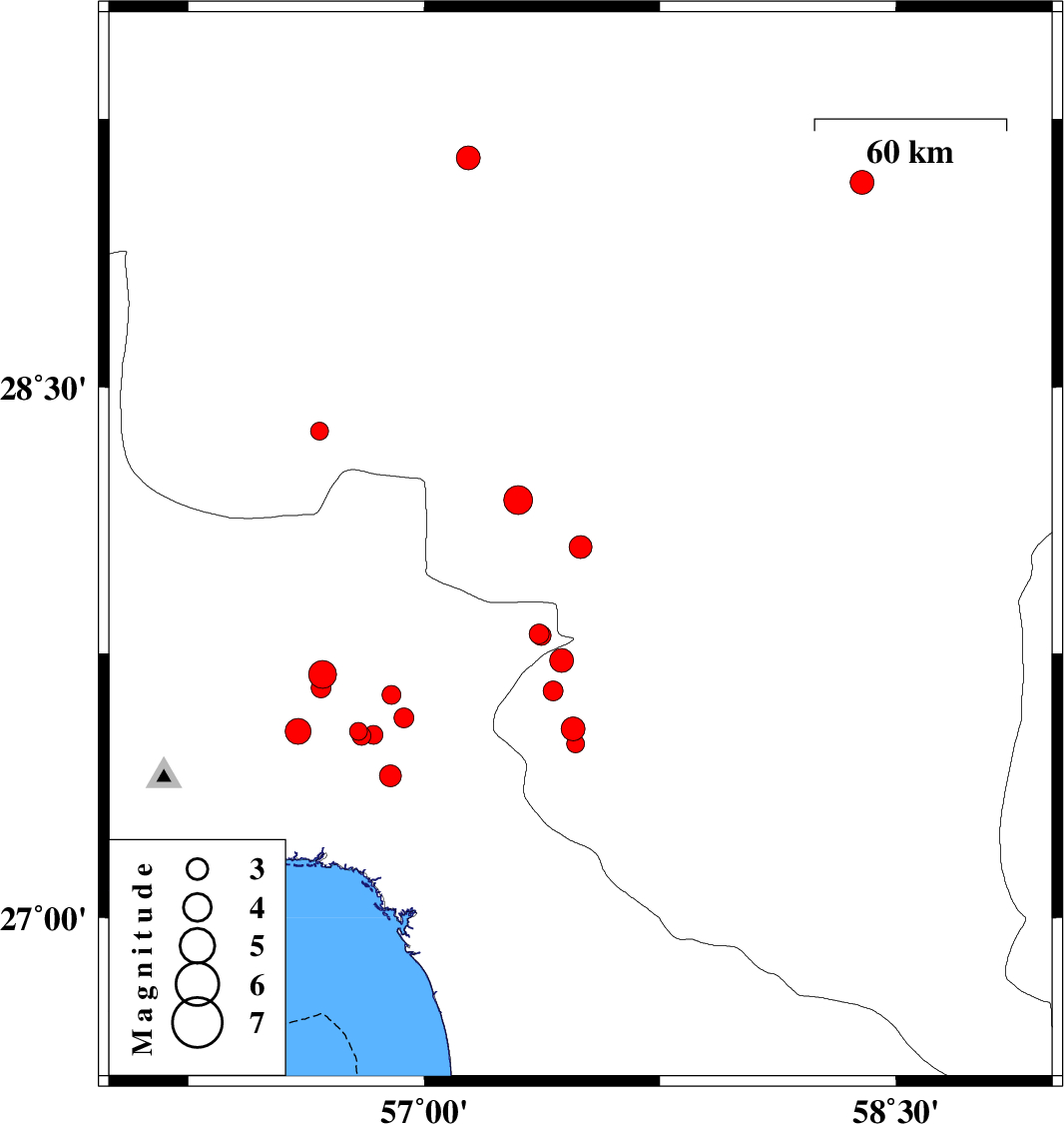 2018/04/17 18:29:37.3 22:59:37.3 27.80157.37114 ML:2.8 Hormozgan Province, 36 km South-West of Kahnuj
