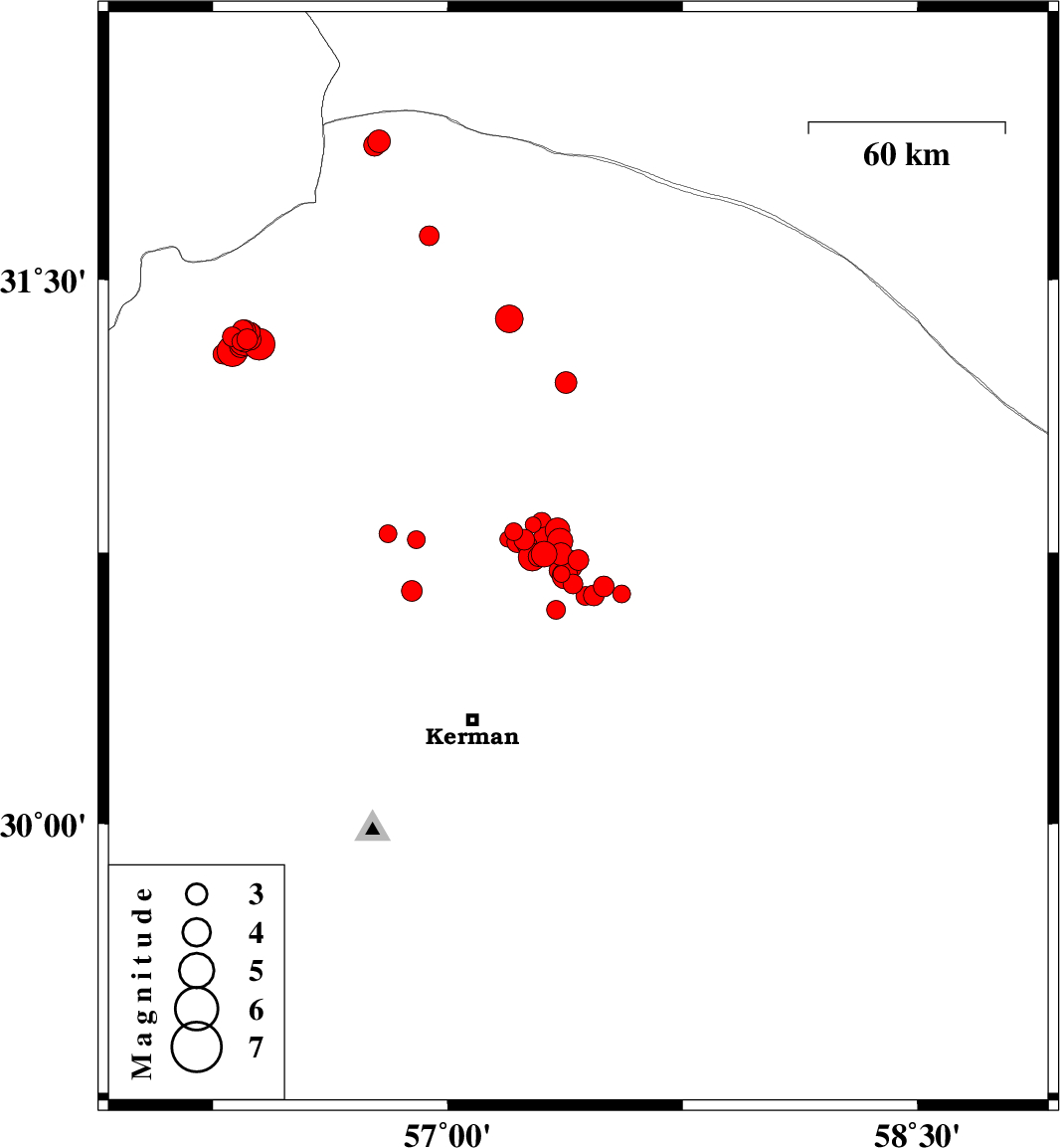 2018/04/27 06:44:45.6 11:14:45.6 30.7357.41714 ML:2.9 Kerman Province, 59 km North-East of Kerman