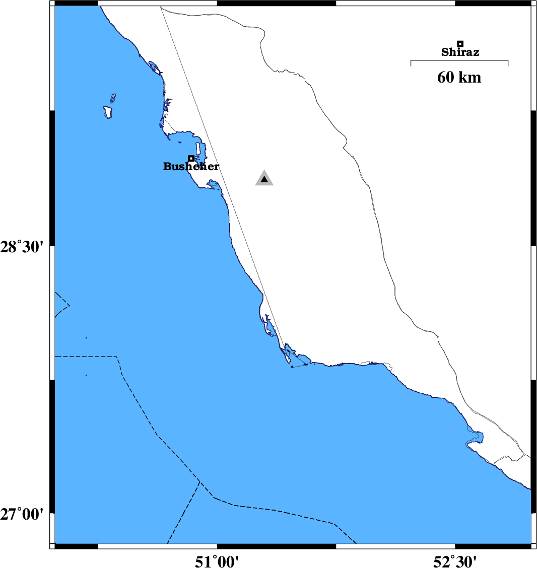 | 2018/04/28 | 12:18:39.6 | 16:48:39.6 | 28.328 | 51.478 | 15 | ML:3.7 | Bushehr Province, 37 km South-East of Khormog | ||