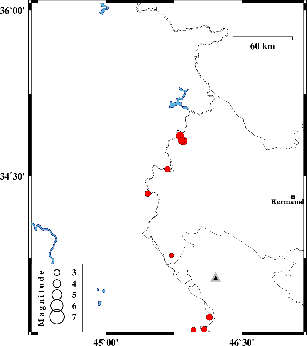 | 2018/04/27 | 03:04:31.4 | 07:34:31.4 | 34.34 | 45.462 | 14 | ML:3 | Iraq, 23 km South-West of Qasr-E-Shirin |