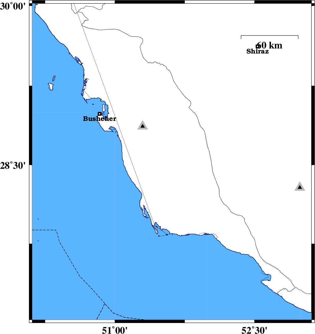 | 2018/05/03 | 06:29:13.3 | 10:59:13.3 | 28.522 | 51.612 | 15 | ML:2.8 | Bushehr Province, 28 km South-East of Khormog | ||