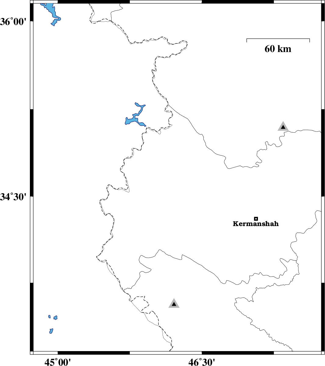 | 2018/04/30 | 22:13:37.9 | 02:43:37.9 | 34.866 | 45.819 | 15 | ML:4 | Kermanshah Province, 12 km North of Tazehabad |