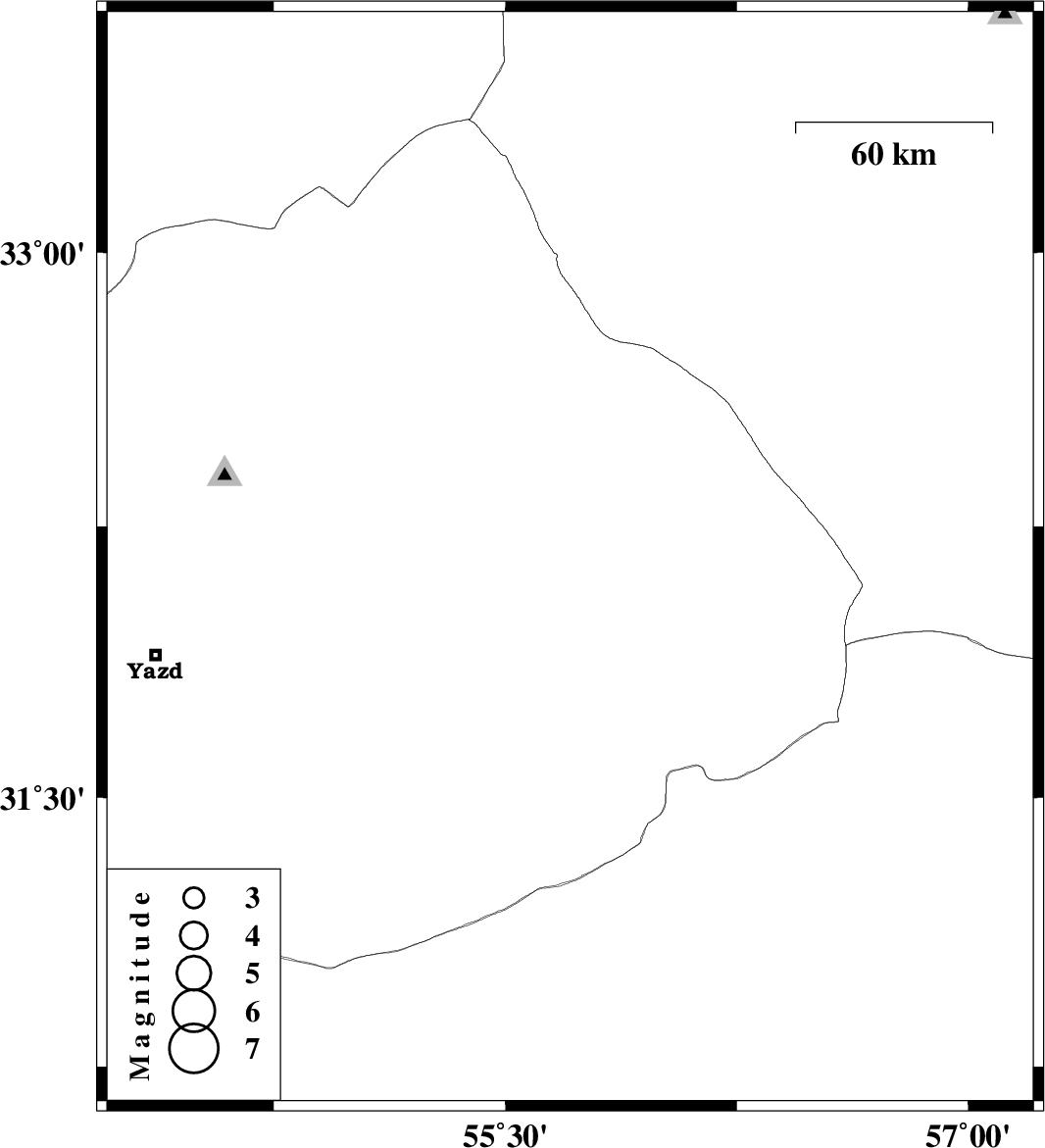 | 2018/05/11 | 02:05:34.4 | 06:35:34.4 | 32.156 | 55.71 | 15 | ML:4 | Yazd Province, 68 km North-East of Bafq |