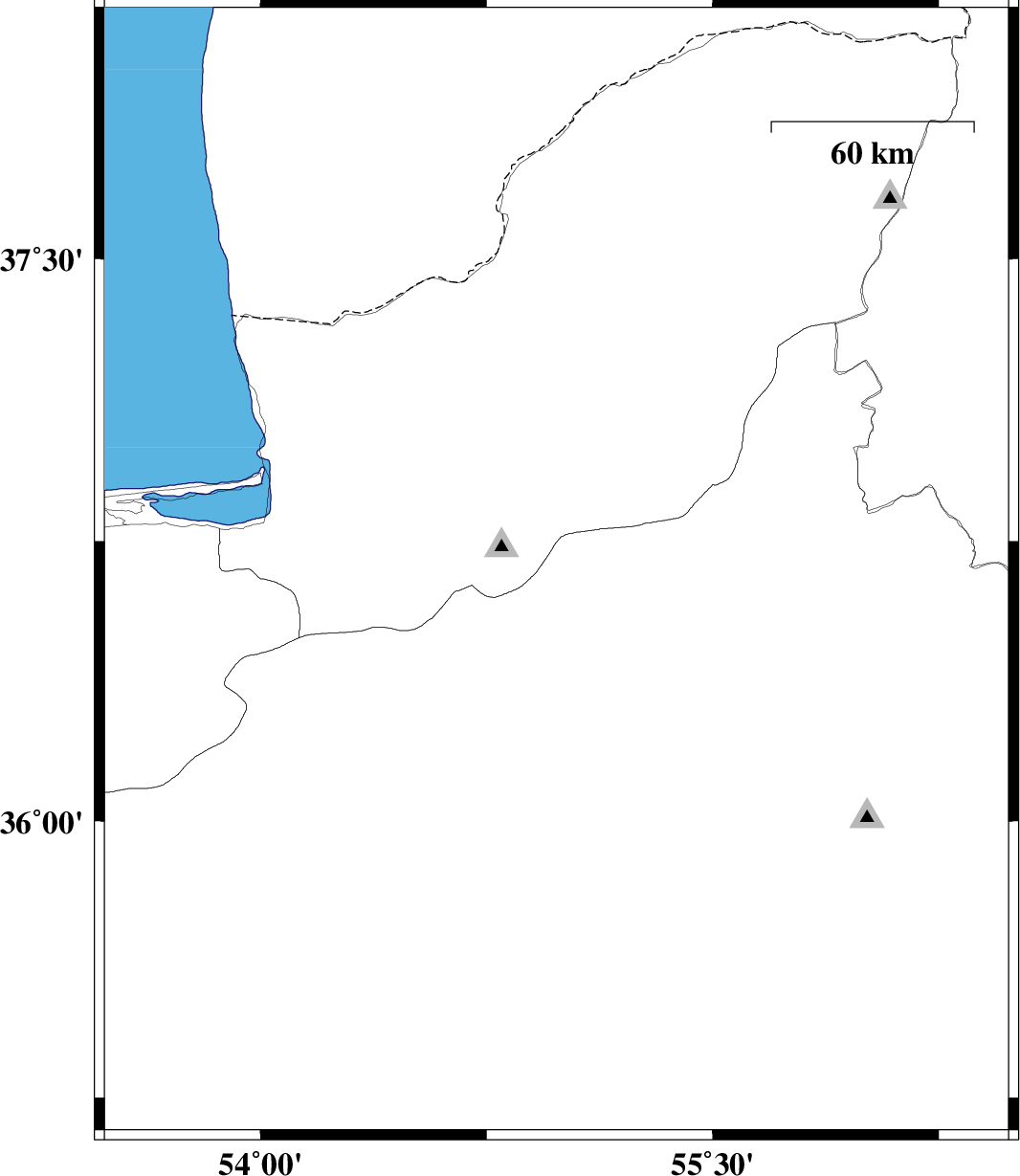 | 2018/04/26 | 12:38:01.9 | 17:08:01.9 | 36.876 | 55.266 | 6 | ML:2.4 | Golestan Province, 19 km South-East of Ramian | ||