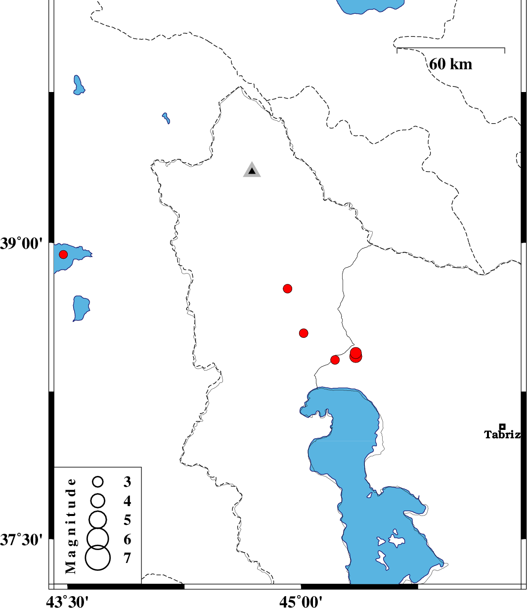 | 2018/04/18 | 12:12:36.2 | 16:42:36.2 | 38.941 | 43.473 | 6 | ML:2.4 | Turkey, 82 km South-West of Seyah Cheshmah | ||