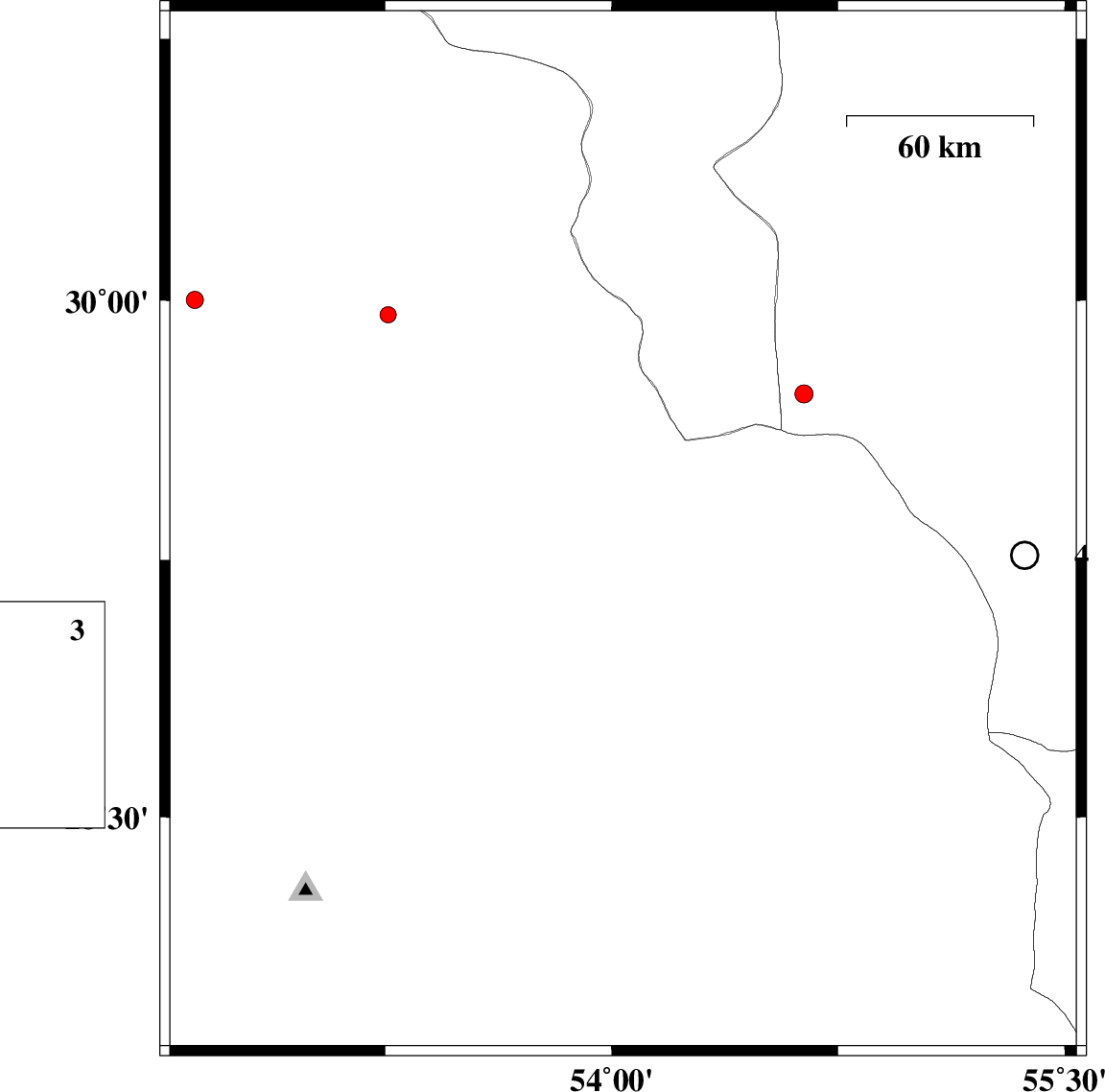 | 2018/05/06 | 00:56:05.1 | 05:26:05.1 | 29.373 | 53.399 | 18 | ML:2.6 | Fars Province, 60 km South of Arsanjan |