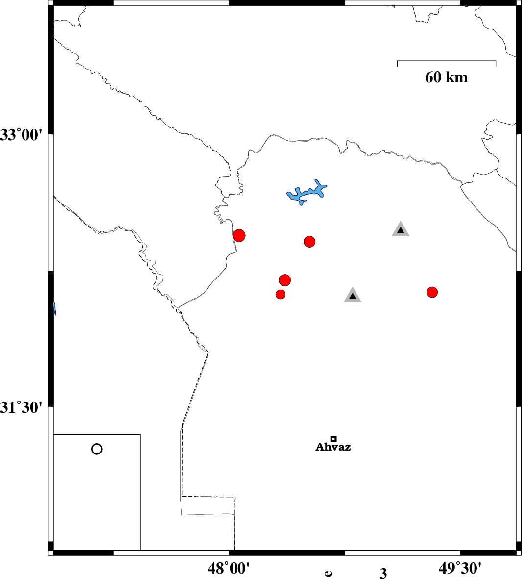 | 2018/05/17 | 01:16:38.3 | 05:46:38.3 | 32.196 | 48.362 | 15 | ML:2.9 | Khoozestan Province, 11 km -East of Shush | ||