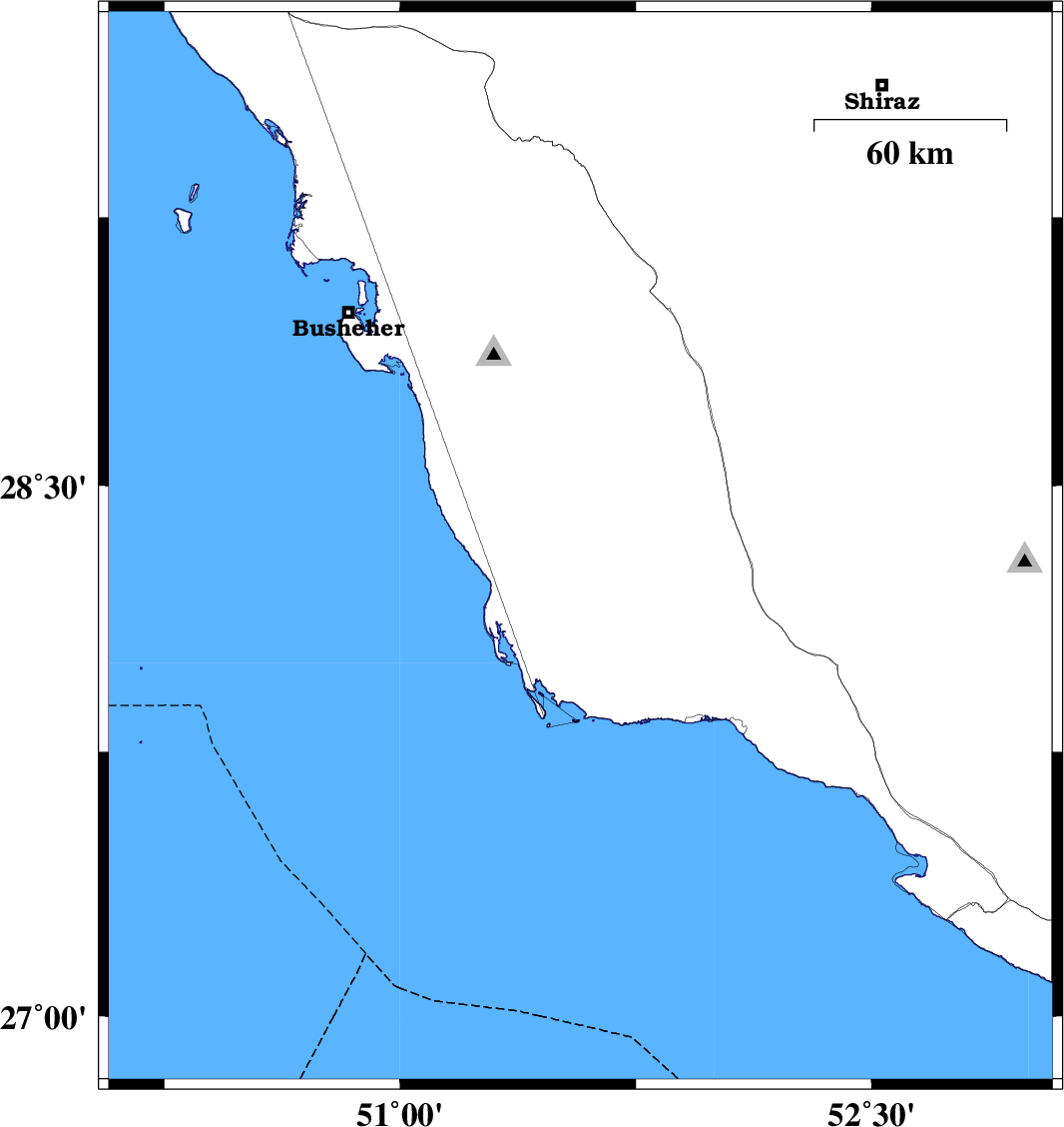| 2018/05/16 | 15:10:09.3 | 19:40:09.3 | 28.433 | 52.177 | 6 | ML:2.7 | Fars Province, 50 km South of Farashband |