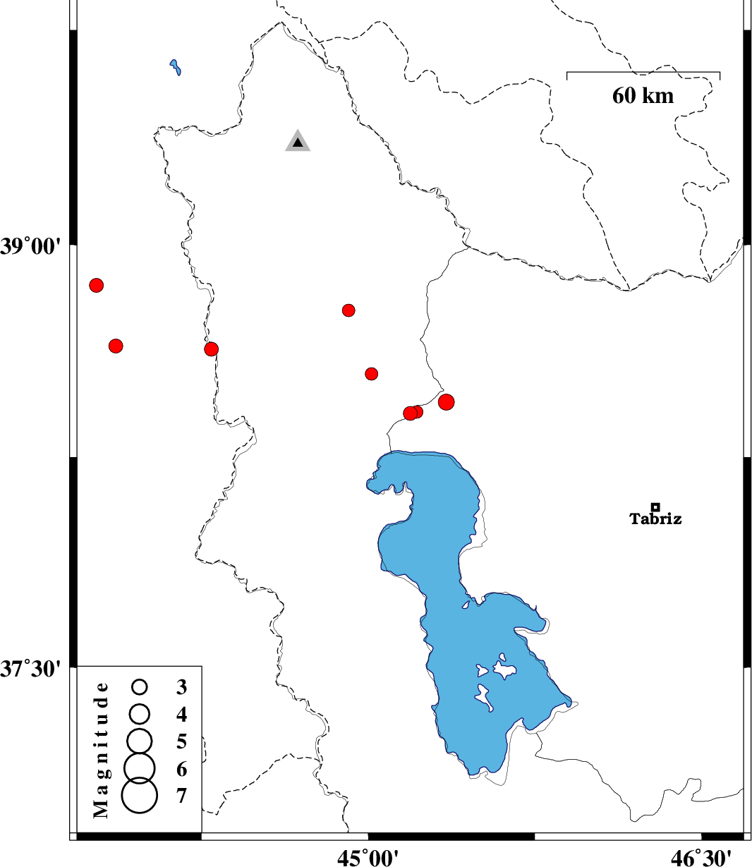 | 2018/04/30 | 05:49:59.2 | 10:19:59.2 | 38.446 | 45.351 | 14 | ML:3.2 | Azarbaijan Sharghi Province, 36 km -West of Marand |