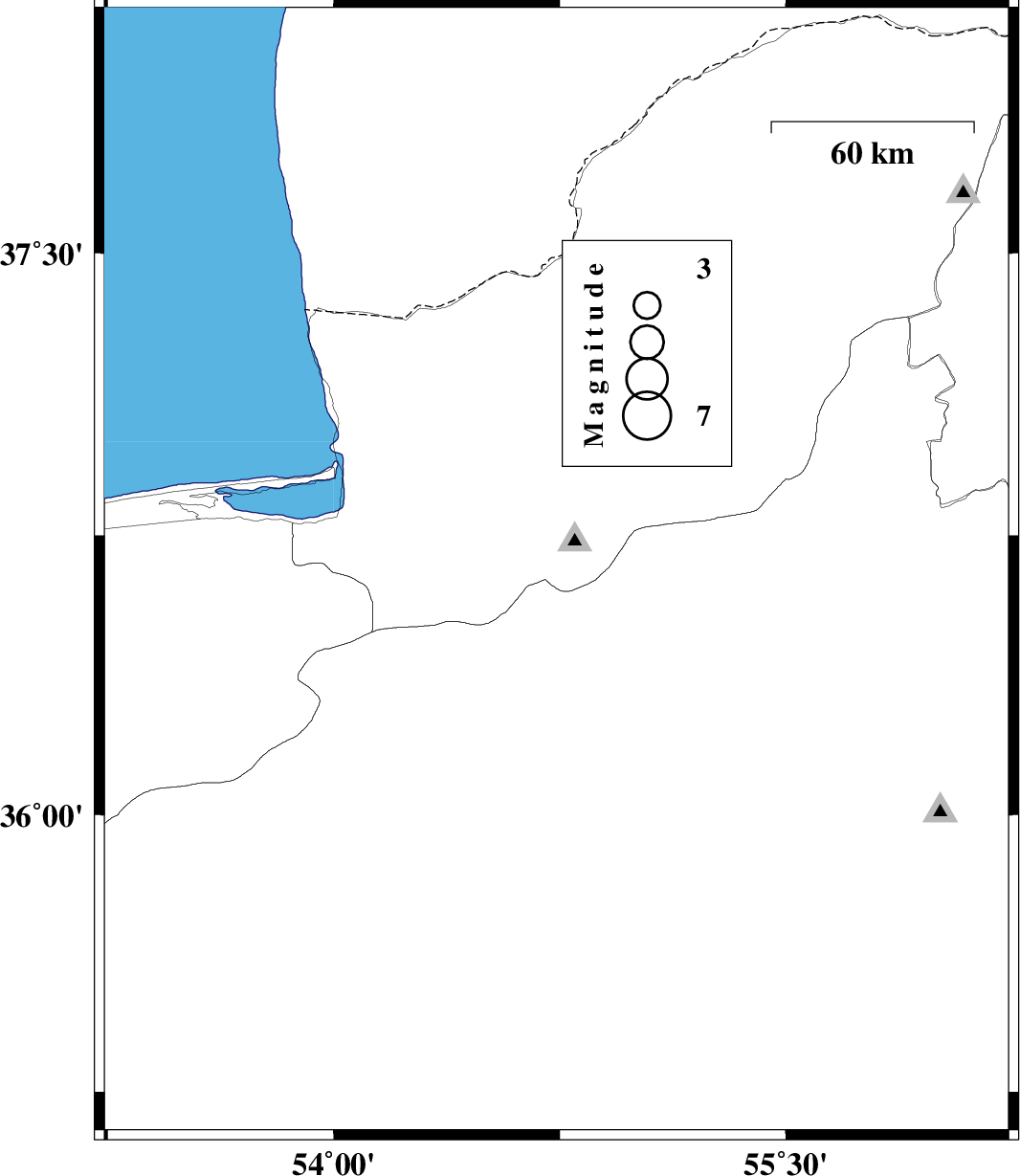 | 2018/05/22 | 13:51:04.5 | 18:21:04.5 | 36.65 | 54.709 | 15 | ML:3.9 | Golestan Province, 32 km South-West of Ali Abad |