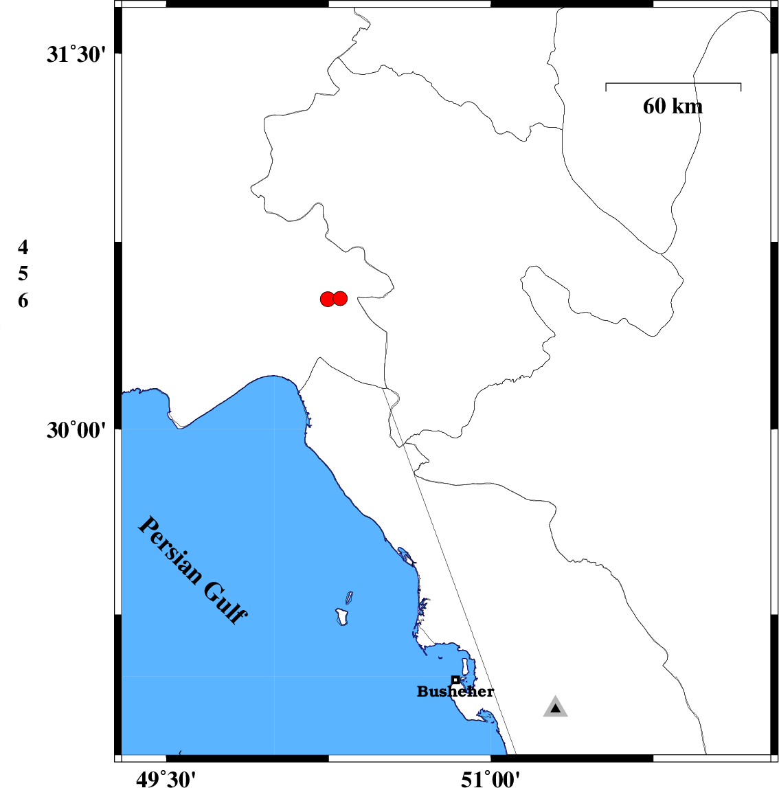 | 2018/05/20 | 17:17:09.7 | 21:47:09.7 | 28.941 | 51.23 | 17 | ML:3 | Bushehr Province, 8 km of Ahram | ||