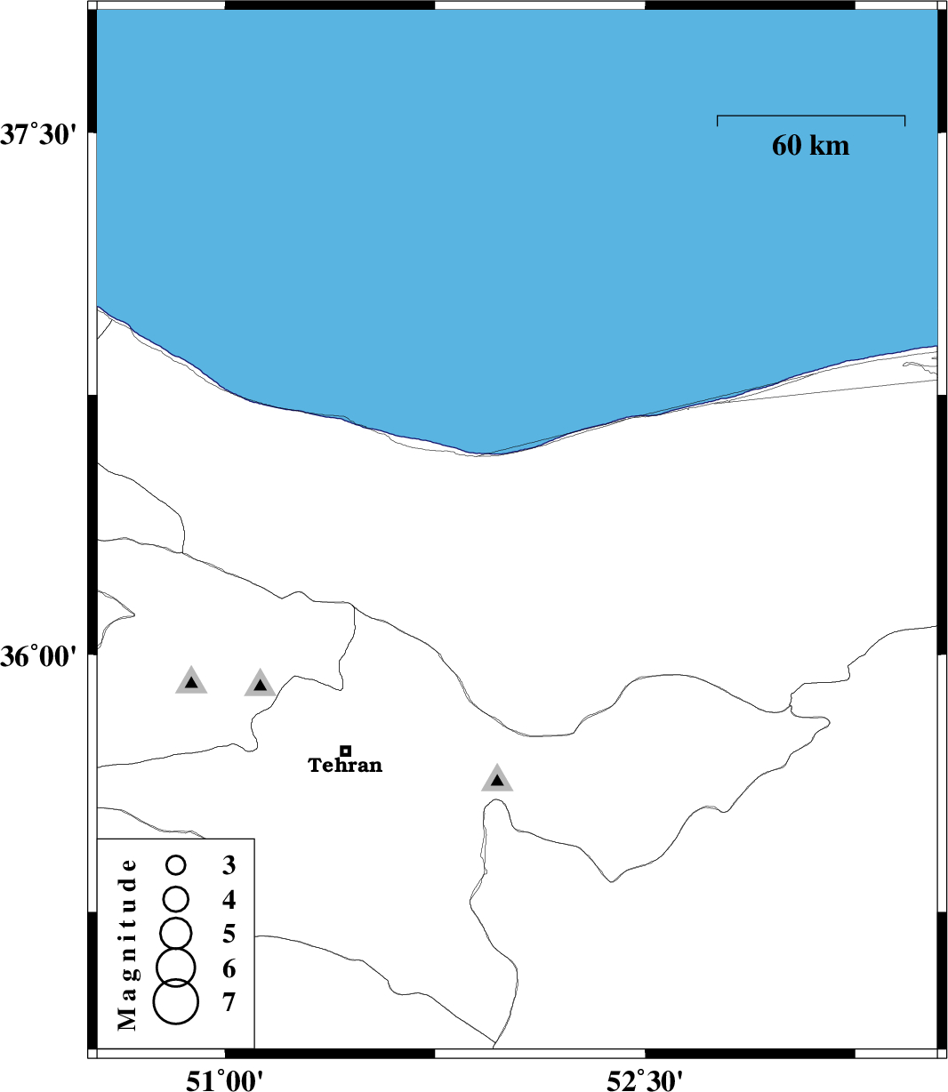| 2018/05/26 | 02:36:11.6 | 07:06:11.6 | 36.348 | 52.043 | 9 | ML:2.5 | Mazandaran Province, 25 km South of Nur |