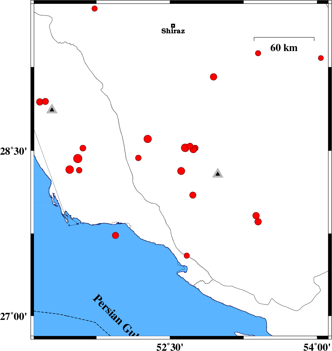 2018/05/10 03:03:10.2 07:33:10.2 28.09752.73314 ML:2.9 Fars Province, 50 km South-West of Qir va Karzin