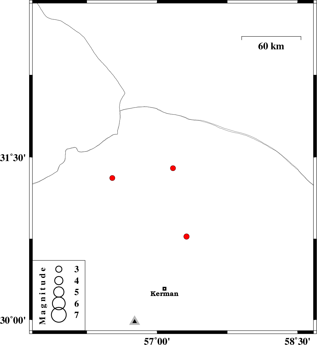 | 2018/05/21 | 23:47:03.2 | 04:17:03.2 | 30.771 | 57.313 | 14 | ML:2.7 | Kerman Province, 58 km North-East of Kerman |