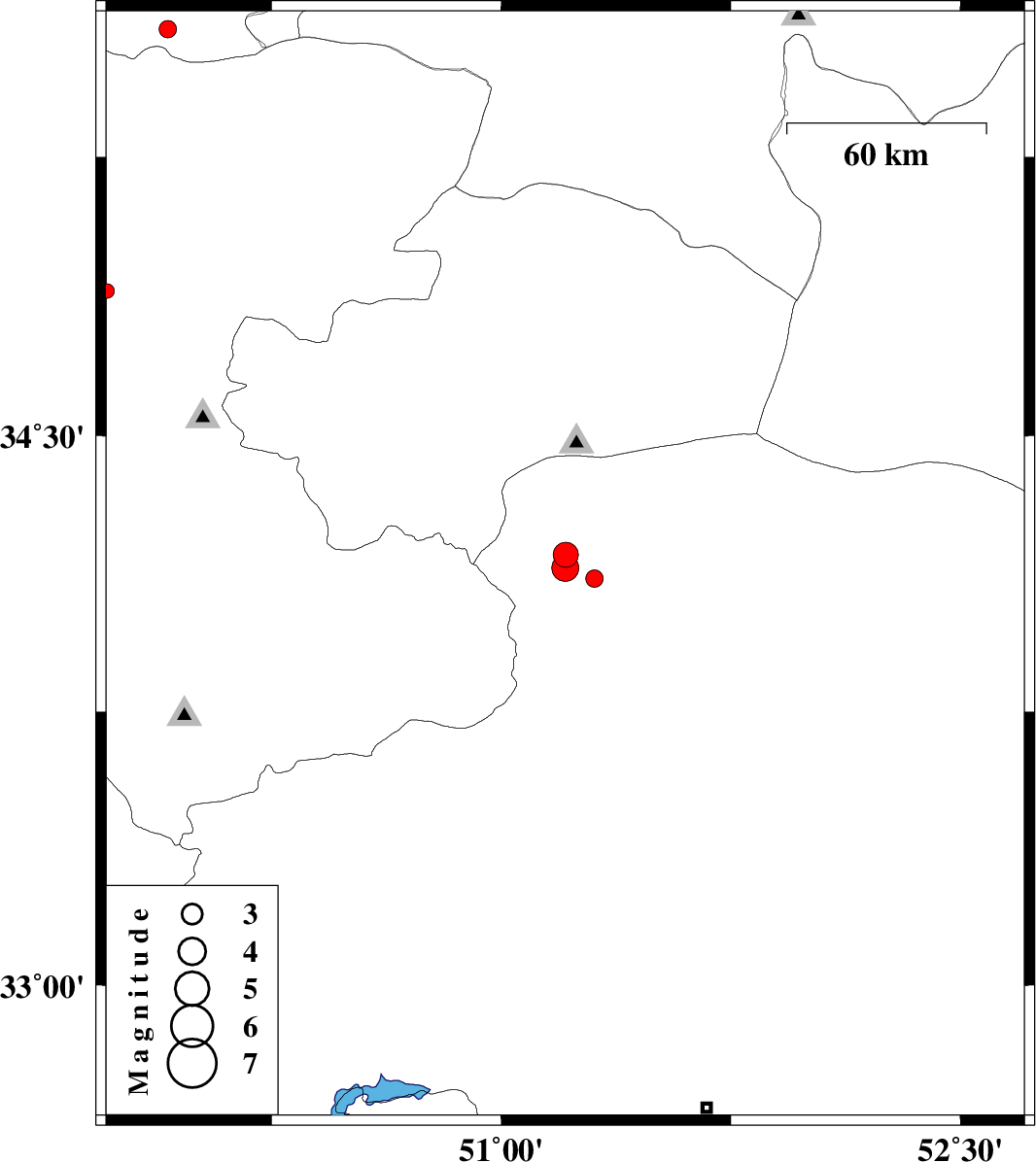 | 2018/05/28 | 17:20:57.3 | 21:50:57.3 | 34.89 | 49.712 | 15 | ML:2.1 | Markazi Province, 36 km North-West of Tafresh | ||