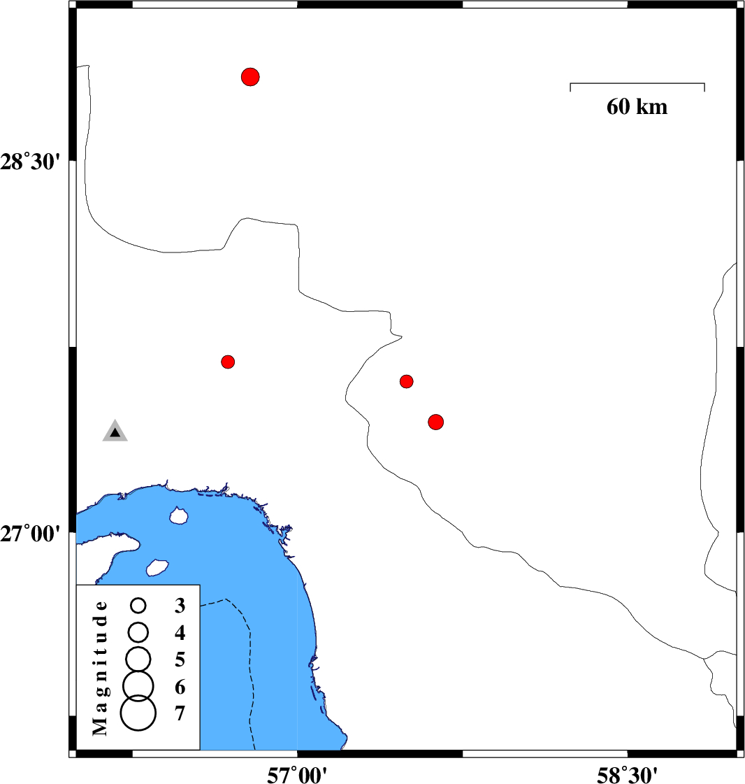 | 2018/05/26 | 12:37:57.9 | 17:07:57.9 | 27.69 | 56.684 | 18 | ML:2.7 | Hormozgan Province, 62 km North-West of Dehbarez | ||