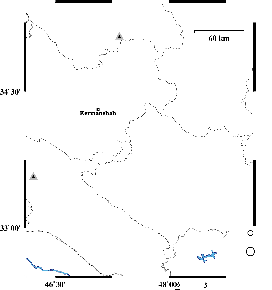 | 2017/11/13 | 08:08:31.3 | 11:38:31.3 | 34.779 | 47.076 | 7 | ML:3.8 | Kermanshah Province, 13 km -East of Kamyaran | ||