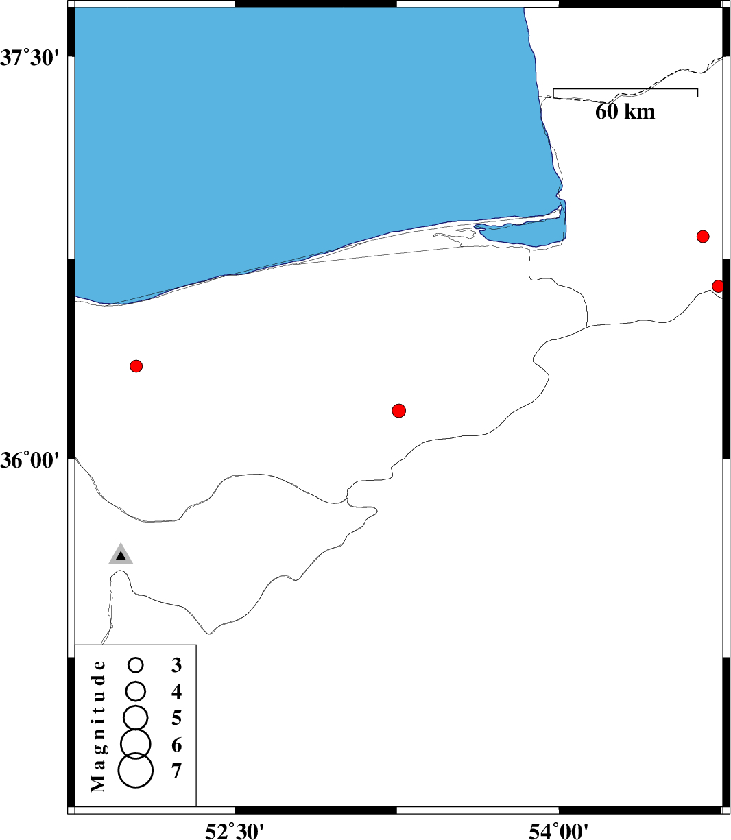 | 2018/05/26 | 02:36:11.6 | 07:06:11.6 | 36.348 | 52.043 | 9 | ML:2.5 | Mazandaran Province, 25 km South of Nur | ||