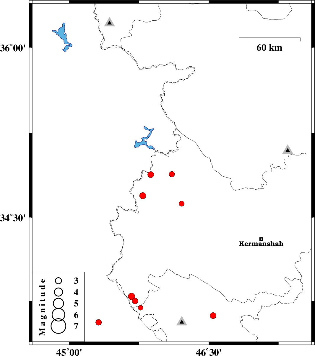 | 2018/05/30 | 13:58:43.4 | 18:28:43.4 | 34.692 | 45.791 | 6 | ML:3.1 | Kermanshah Province, 9 km of Tazehabad | ||