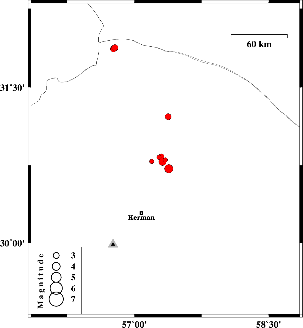 | 2018/03/30 | 23:08:00.6 | 03:38:00.6 | 30.784 | 57.314 | 15 | ML:3.8 | Kerman Province, 60 km North-East of Kerman | ||