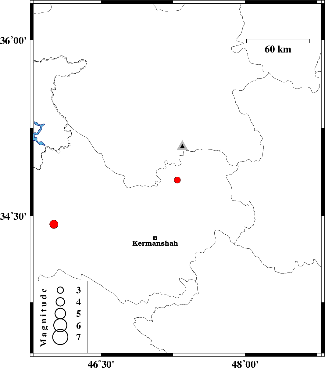 | 2018/06/06 | 00:07:07.5 | 04:37:07.5 | 34.426 | 46.008 | 15 | ML:3.9 | Kermanshah Province, 12 km -East of Sar-e pol-e zahab |