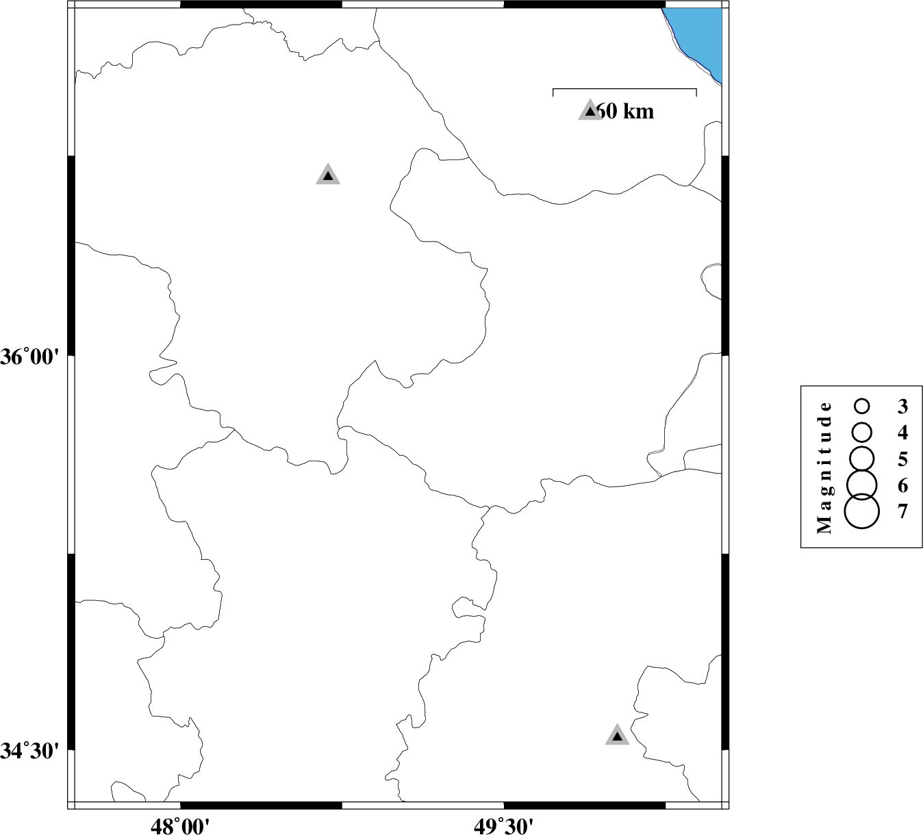 | 2018/06/09 | 22:00:31.7 | 02:30:31.7 | 35.782 | 49.013 | 15 | ML:2.6 | Ghazvin Province, 44 km North of Razan | ||