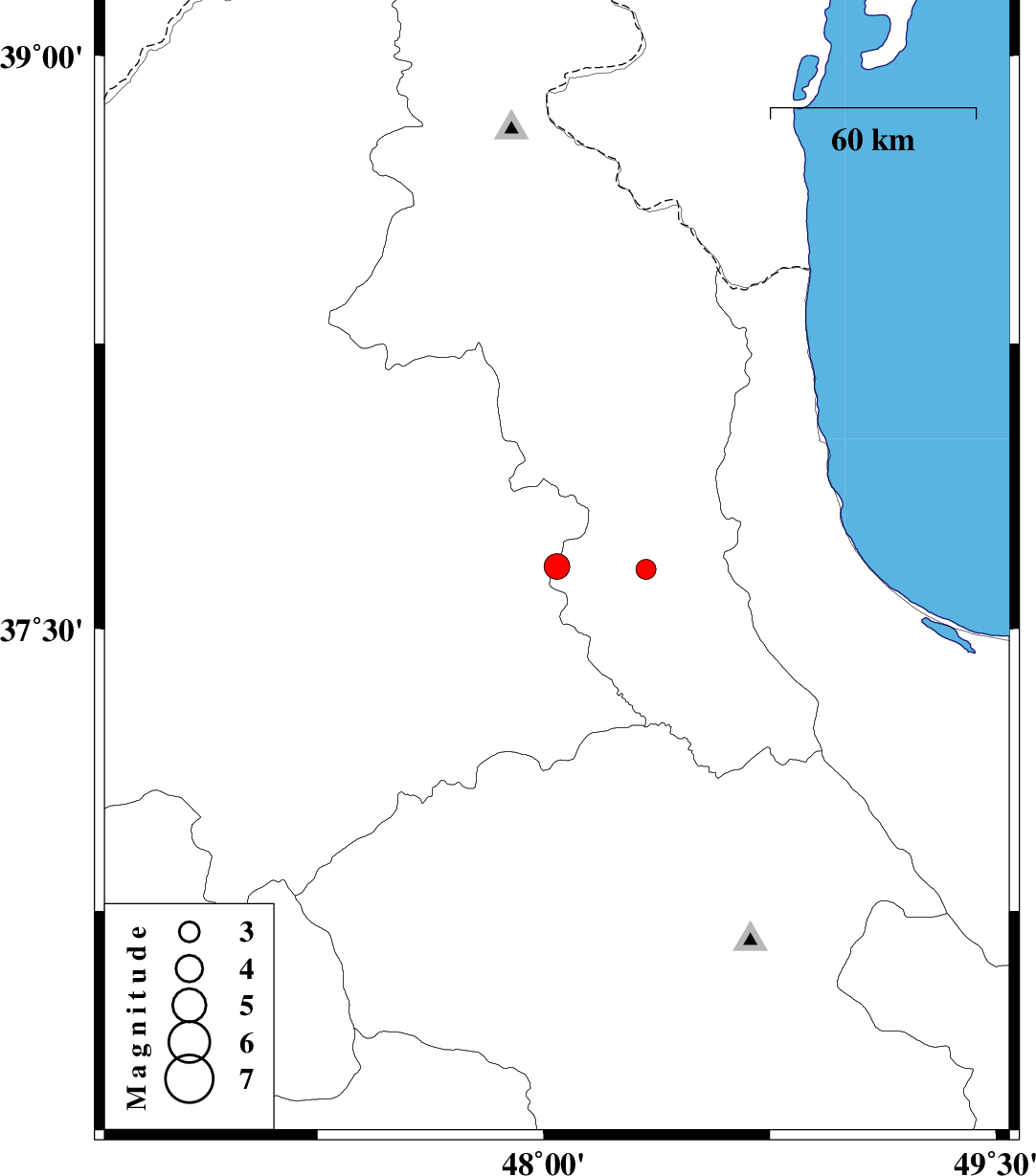 | 2018/06/12 | 03:39:44.0 | 08:09:44.0 | 37.664 | 48.044 | 15 | ML:3.8 | Ardebil Province, 31 km -West of Givi | ||