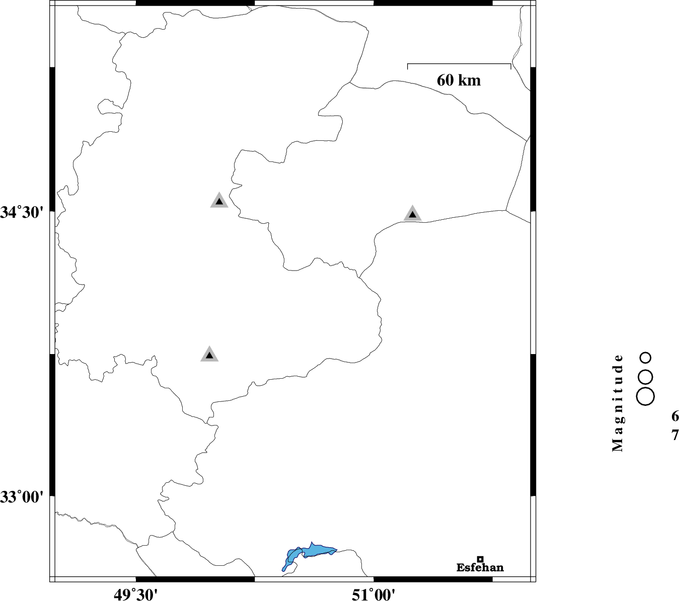 | 2018/06/06 | 02:08:55.6 | 06:38:55.6 | 32.729 | 49.844 | 6 | ML:2.6 | Esfahan Province, 34 km South-West of Fereydunshahr | ||