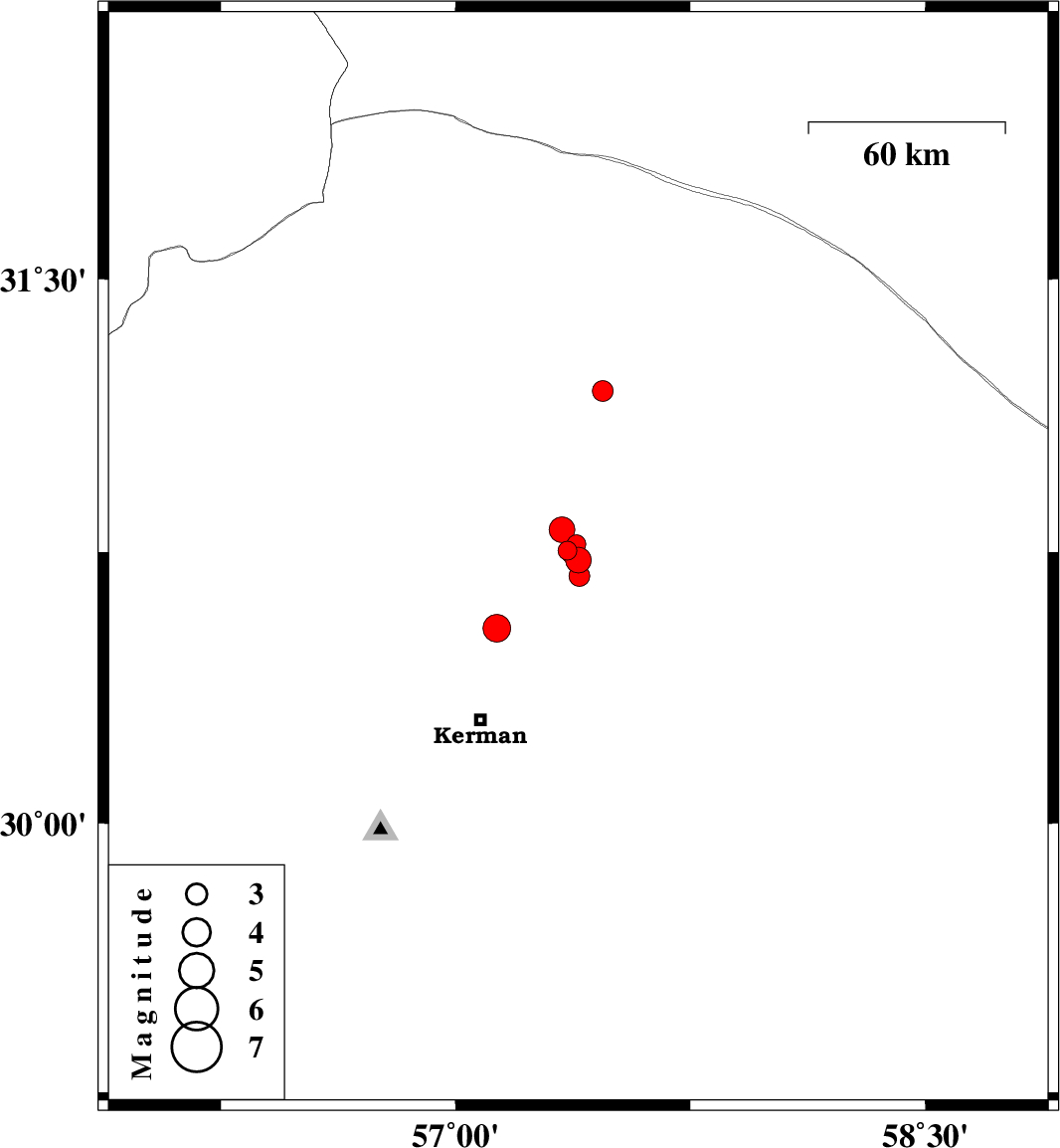 | 2018/06/28 | 19:52:40.4 | 00:22:40.4 | 30.685 | 57.395 | 14 | ML:2.9 | Kerman Province, 54 km North-East of Kerman | ||