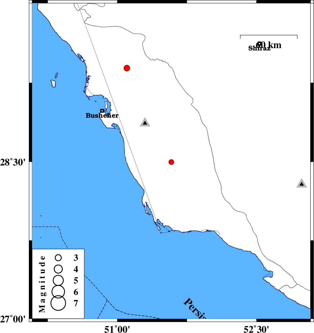 | 2018/06/28 | 22:16:16.1 | 02:46:16.1 | 29.387 | 51.103 | 14 | ML:2.9 | Bushehr Province, 17 km North-West of Borazjan |