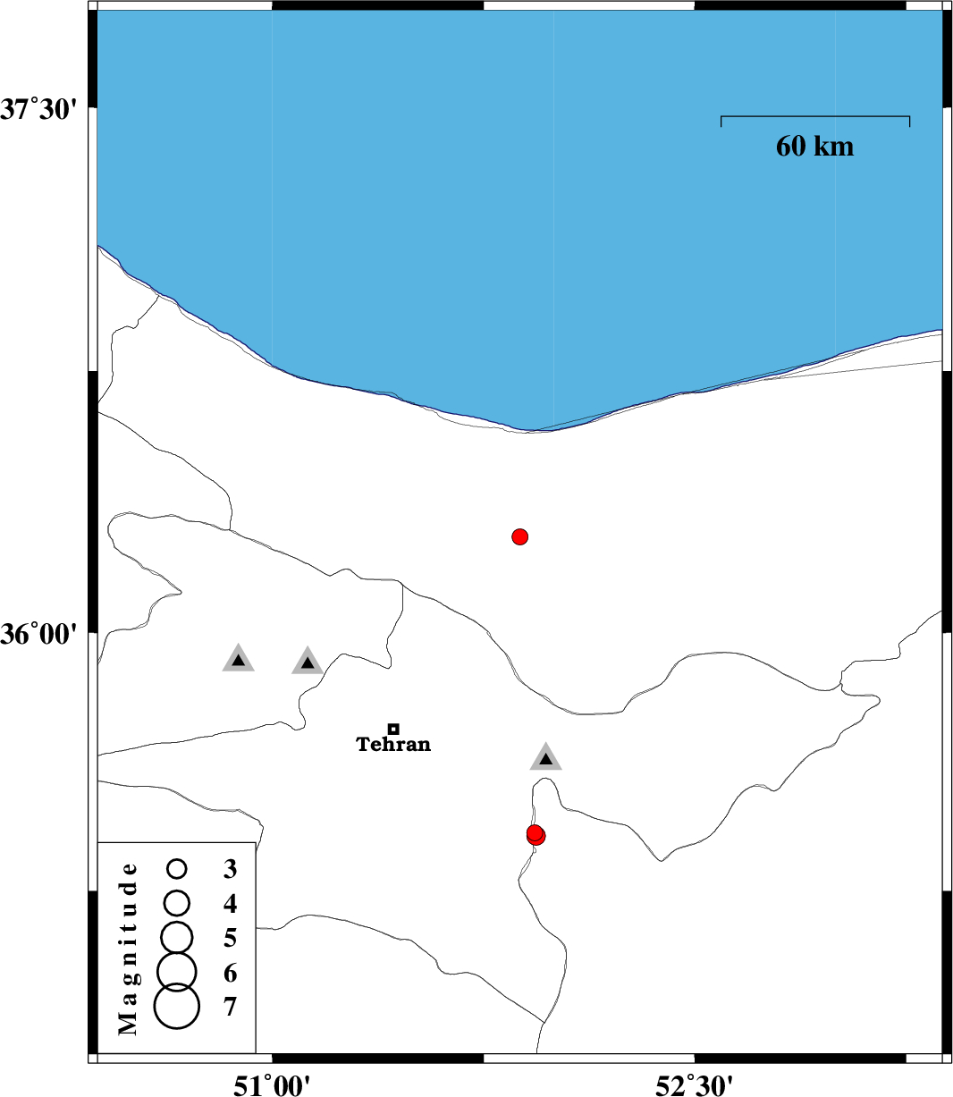 | 2018/07/03 | 19:13:24.5 | 23:43:24.5 | 36.275 | 51.879 | 15 | ML:2.5 | Mazandaran Province, 36 km South-West of Nur | ||