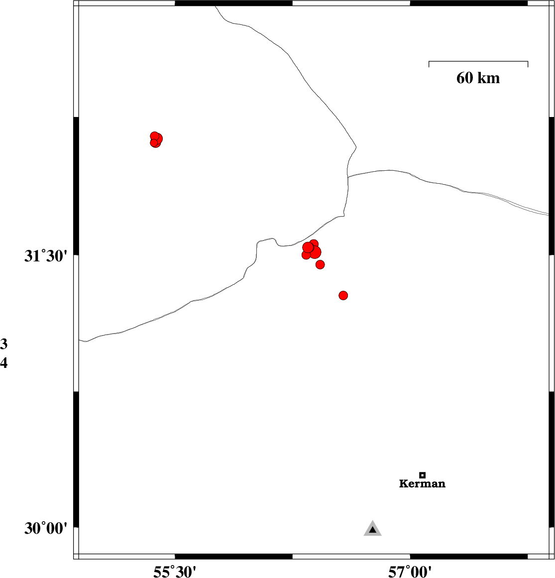 2018/06/29 22:55:32.7 03:25:32.7 30.75457.35814 ML:2.7 Kerman Province, 58 km North-East of Kerman