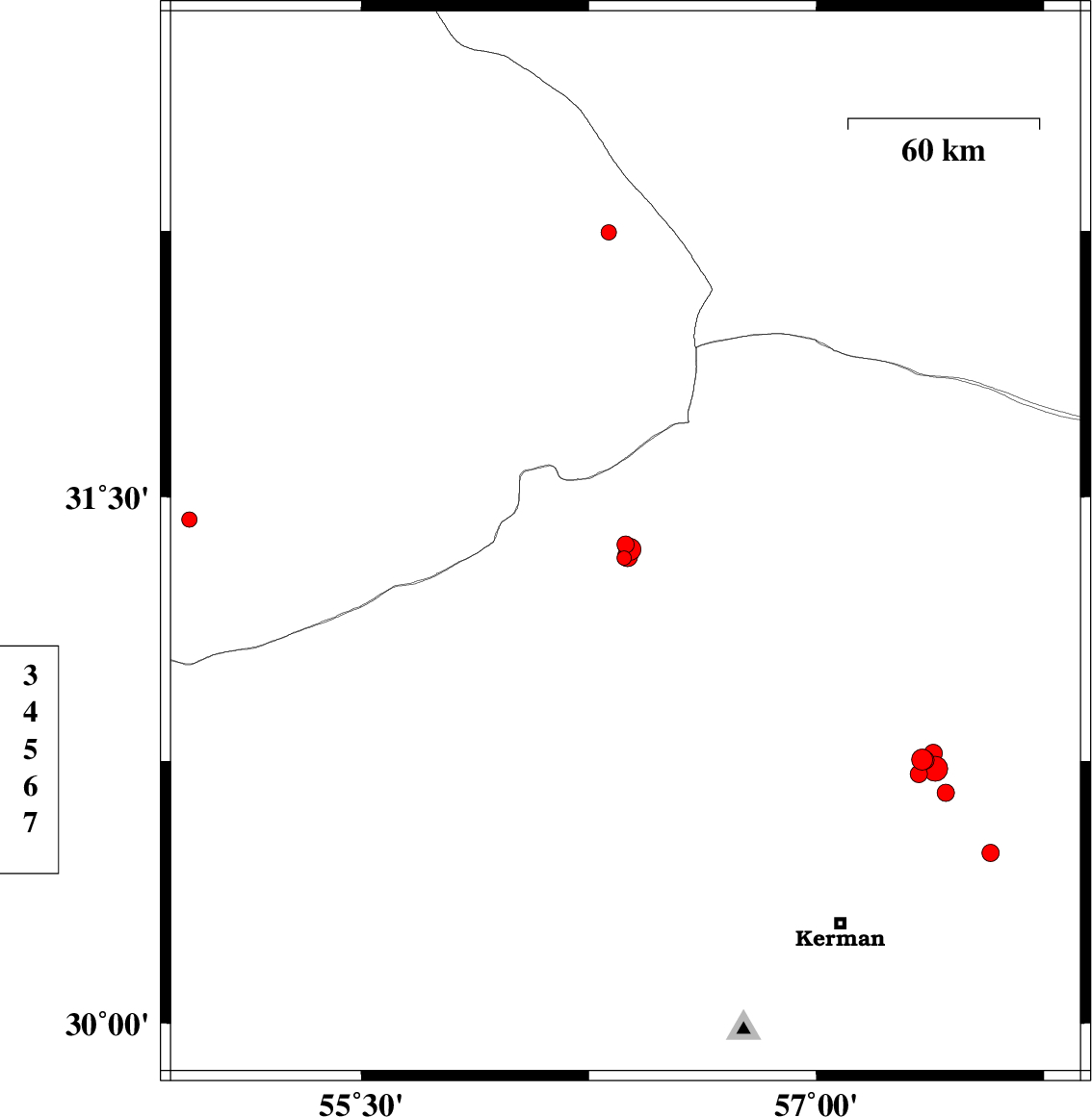 2018/06/29 22:55:32.7 03:25:32.7 30.75457.35814 ML:2.7 Kerman Province, 58 km North-East of Kerman