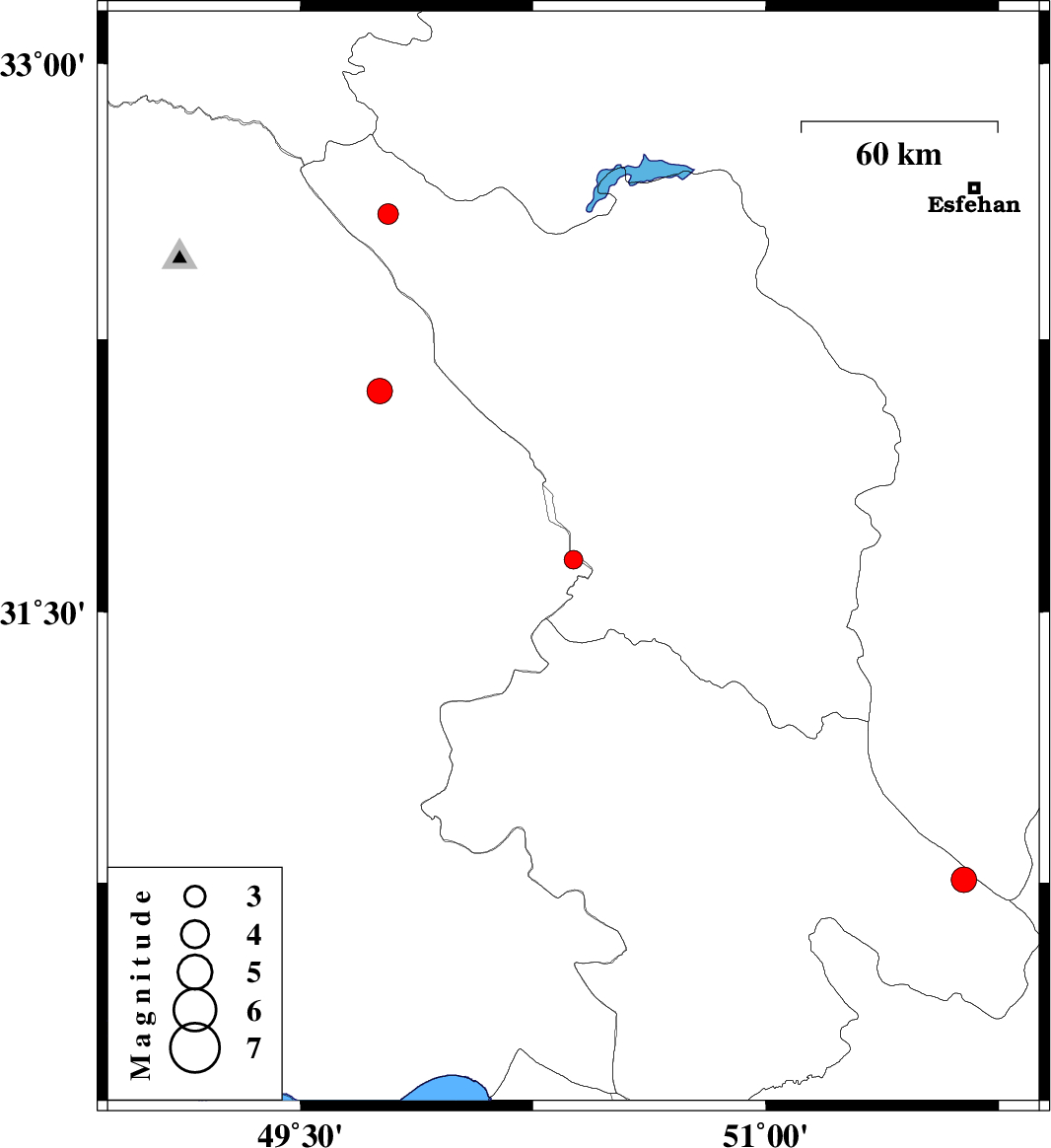 | 2018/07/07 | 14:34:35.4 | 19:04:35.4 | 32.591 | 49.783 | 15 | ML:2.9 | Chaharmahal Bakhtiari Province, 35 km North-West of Chelgard | ||