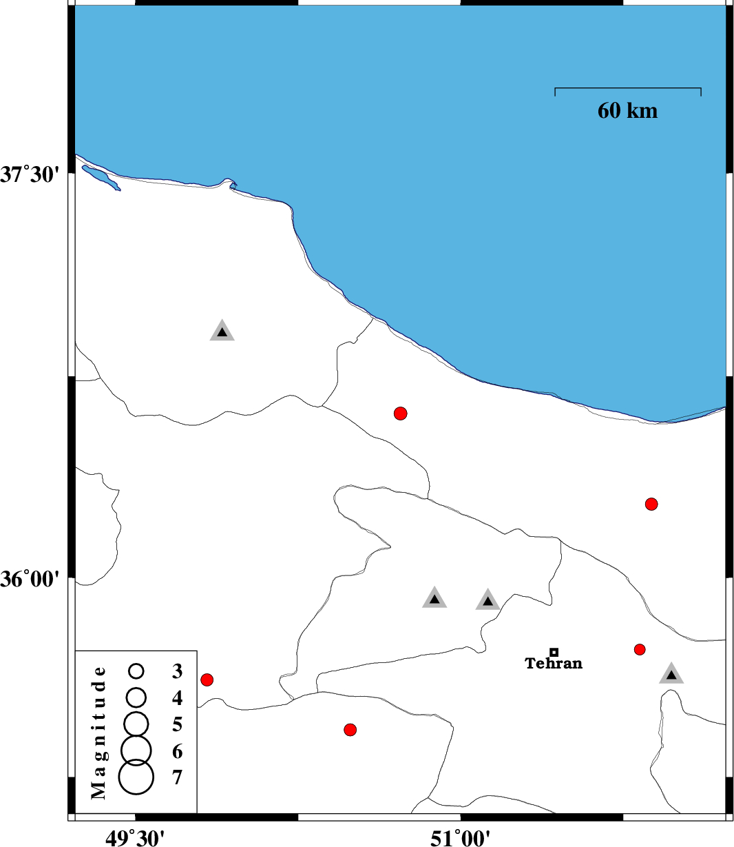 | 2018/07/10 | 05:54:32.9 | 10:24:32.9 | 35.73 | 51.825 | 7 | ML:2.3 | Tehran Province, 22 km -West of Damavand | ||