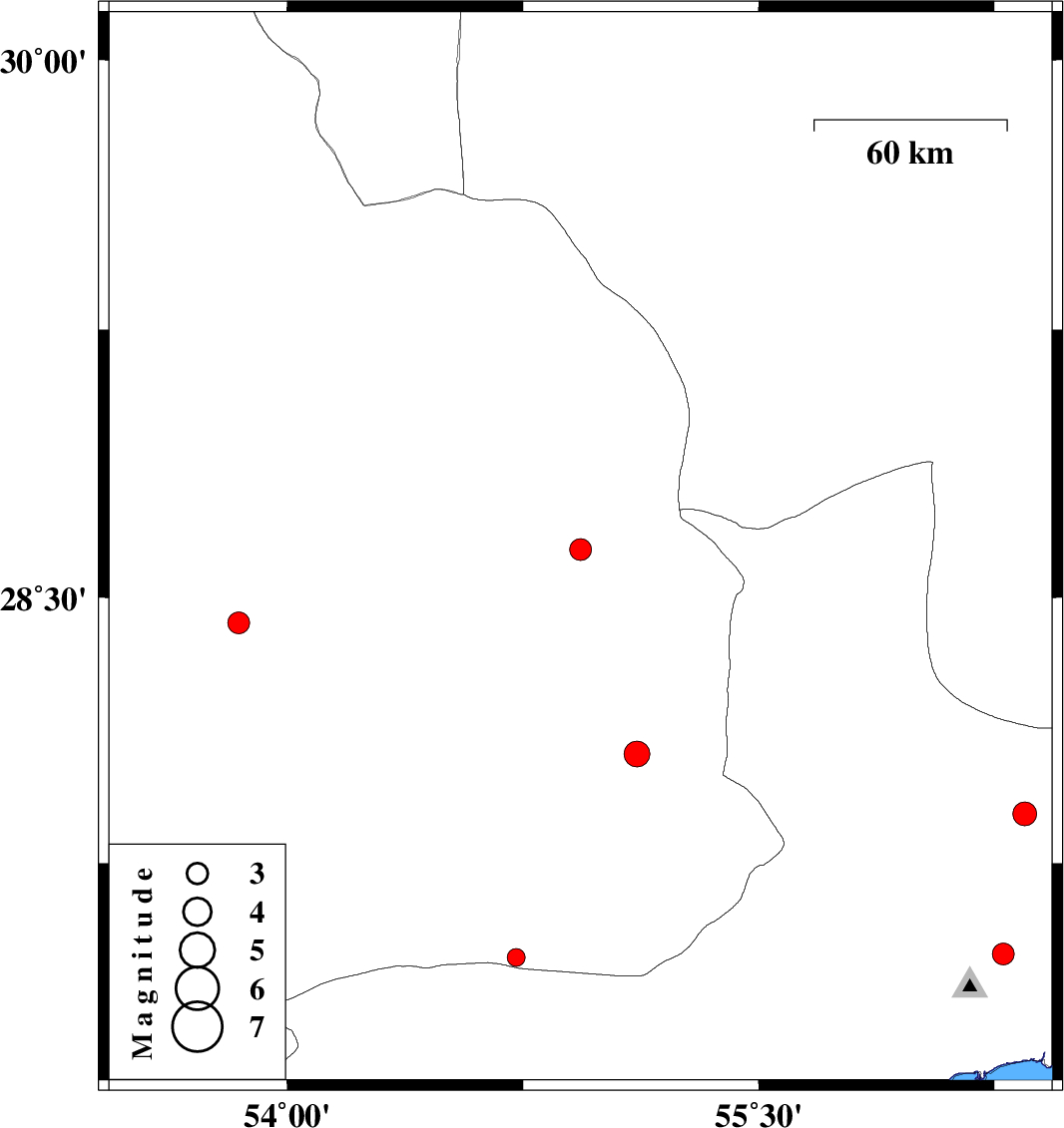 | 2018/07/11 | 02:30:26.7 | 07:00:26.7 | 28.635 | 54.933 | 14 | ML:3.1 | Fars Province, 41 km South-East of Darab | ||