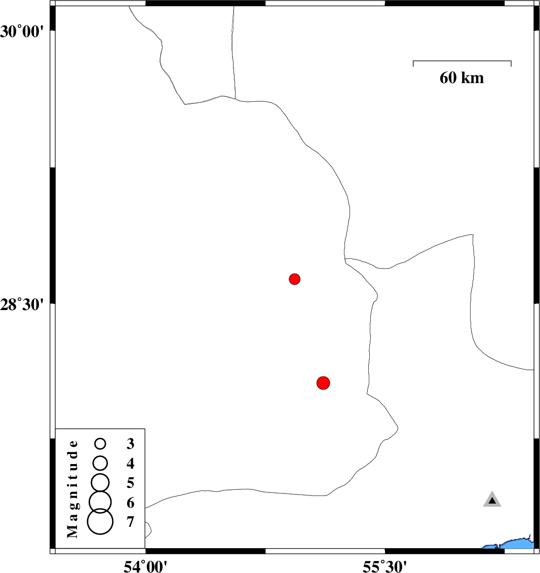 | 2018/07/10 | 20:03:49.4 | 00:33:49.4 | 28.059 | 55.112 | 14 | ML:3.7 | Fars Province, 82 km South-West of Hajiabad |