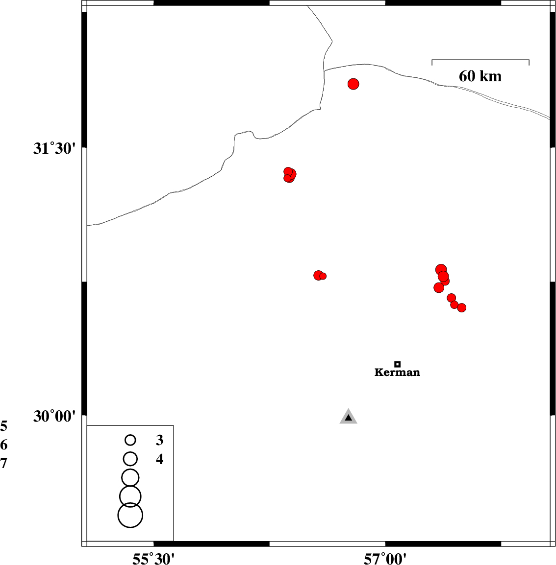 2018/07/11 05:20:07.0 09:50:07.0 30.60557.49414 ML:2.5 Kerman Province, 53 km North-East of Kerman