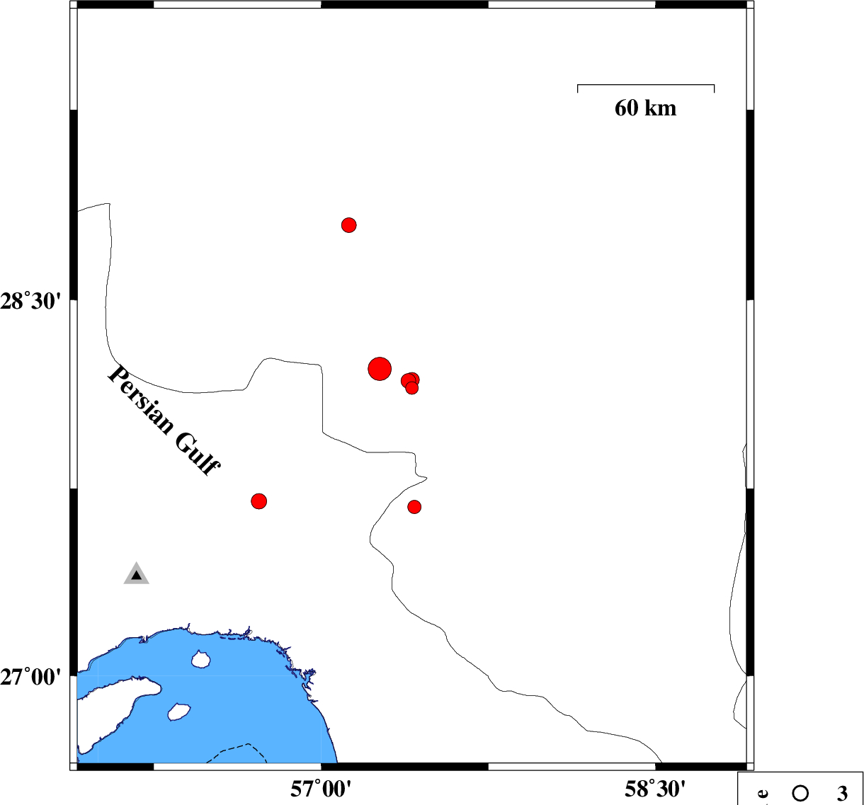 | 2018/07/13 | 09:25:48.0 | 13:55:48.0 | 28.183 | 57.407 | 17 | ML:3 | Kerman Province, 38 km North-West of Kahnuj | ||
