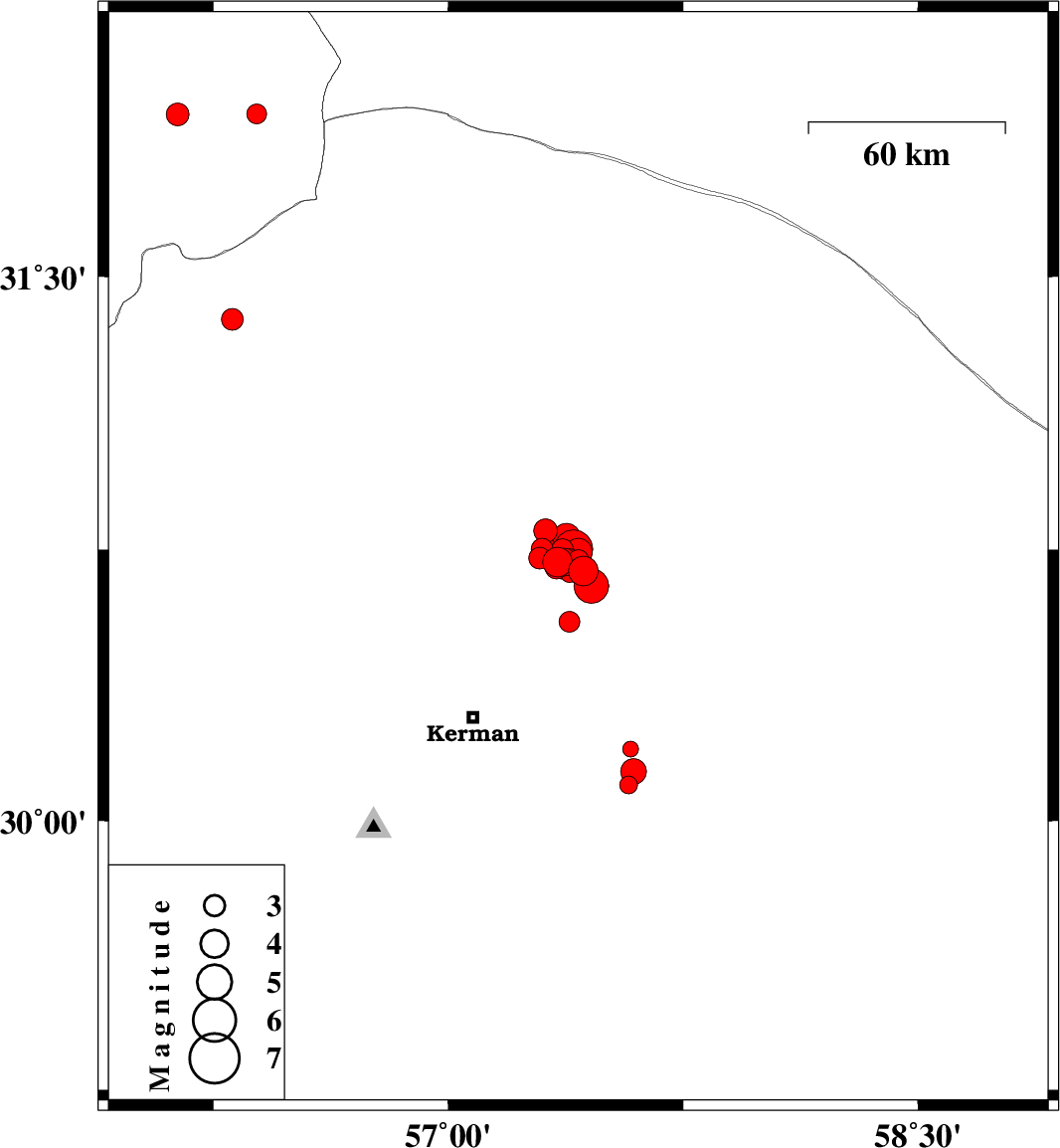 2017/12/01 03:35:00.5 07:05:00.5 30.75257.39916 ML:5.5 Kerman Province, 60 km North-East of Kerman
